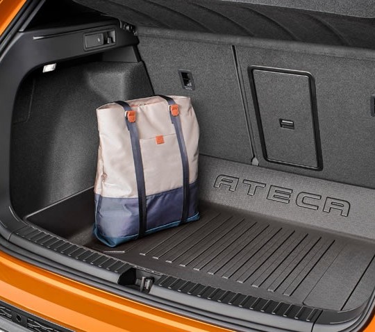 Pièce de protection en plastique à bords relevés à placer sur la base du coffre. Résistant et imperméable, facile à nettoyer et présentant de grandes rainures évitant le déplacement du chargement. S'adapte au coffre de l'ATECA avec motorisation Front et 4x4 avec pack tyrefit Applicable uniquement dans les combinaisons de PR suivantes : - 1X0+3GA: Traction avant et sans plancher de charge - 1X0+3GE: Traction avant et plancher de charge surélevé - 1X1+1G8+3GA : transmission 4x4, pack anomalies et sans plancher de charge - 1X1+1G8+3GE : transmission 4x4, pack anomalies et plancher de charge surélevé