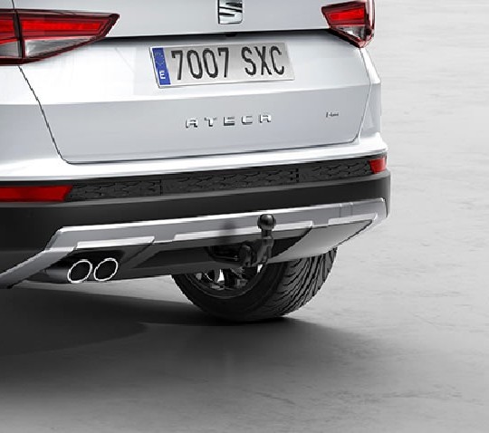 Not applicable to CUPRA Ateca (575092160C). Attache de remorque pliante manuelle et amovible électrique. Pour véhicules sans prééquipement, accessoire à combiner avec : - Kit électrique (575055204A) - Centrale électrique (référence selon date de fabrication du véhicule) Pour poser l'attache, il faut remplacer le revêtement côté passager comme suit : - Pour coffre confort (PR 5A2) ou coffre confort avec cache de service (PR 5A7), le revêtement latéral 575867428 CA9 doit être remplacé par les références : Revêtement latéral : 575867428B CA9 Cache interrupteur : 5G0868345 81U Interrupteur : 3G0959511A WHS - Pour coffre avec rangement (PR 5A5), le revêtement latéral 575867428A DXO doit être remplacé par les références : Revêtement latéral : 575867428C DXO Cache interrupteur : 5G0868345 81U Interrupteur : 3G0959511A WHS Pour tous les véhicules équipés de préinstallation (PR 1D8), il faut exécuter le code 3446F pour passer au PR #D8 (Rééquipement dispositif d'attelage rigide) et que la BCM reconnaisse le crochet.
