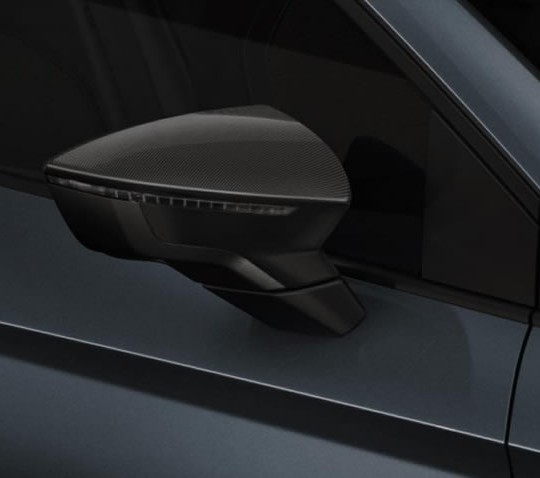Jeu de coques de rétroviseurs extérieurs en fibre de carbone faciles à monter. Surface en fibre de carbone pour un design sport et élégant. Rétrofit pour modèles : Leon, Ibiza et Arona. Matériau : fibre de carbone Comprend 1 jeu composé de deux coques de rétroviseurs extérieurs spécifiques au véhicule.