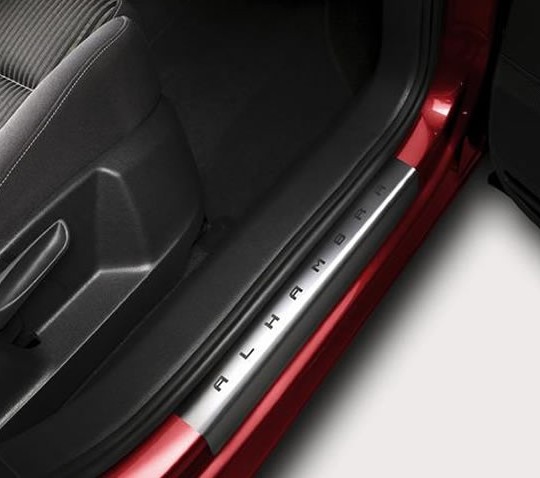 Personnalisation SEAT Alhambra. Fabrication en acier inoxydable, avec logo gravé au laser. Ces pièces protègent le seuil de porte et renforcent le caractère sportif du véhicule. Finition brillante.