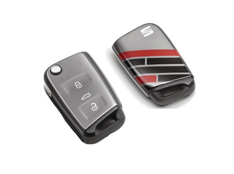 Coque décorative pour la clé du véhicule. Composée de deux parties, elle se fixe grâce à un adhésif. Design SPEED