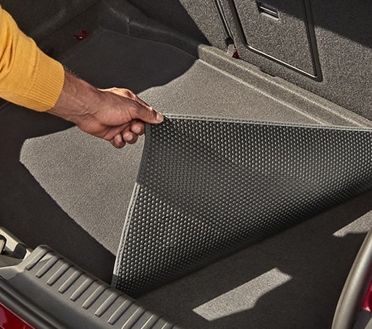 Tapis adapté aux dimensions du plancher du coffre. Ce tapis est constitué de moquette sur une face et d’une surface plastique sur l'autre, ce qui lui permet de s'adapter à tous vos besoins. Son esthétique correspond aux lignes de série ; le plateau permet également de transporter des objets humides et sales sans endommager le coffre. Convient à la fois pour le plancher supérieur et inférieur. Valable pour les moteurs PHEV. Non valable pour les moteurs CNG.