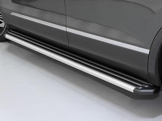 Les étriers soulignent le caractère SUV de votre véhicule tout en facilitant l’accès à celui-ci et le chargement sur le toit. Les étriers sont fabriqués en aluminium argenté anodisé et sont fermés, de chaque côté, par des embouts de finition en plastique noir. Les surfaces d’appui sont réalisées avec un revêtement en plastique noir antidérapant, garantissant un accès sûr au véhicule. Compatible avec les bavettes garde-boue. Résumé de caractéristiques uniques : -Inclut toutes les pièces de fixation nécessaires -Revêtement anticorrosion -200 kg de charge sur chaque étrier -Respecte les exigences lors des chocs latéraux Non compatible avec les versions PHEV.